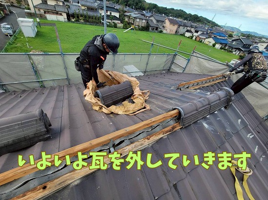 瓦を外していくことで、これから瓦の下にある古い防水シートや下地の状態を確認できるようになります。